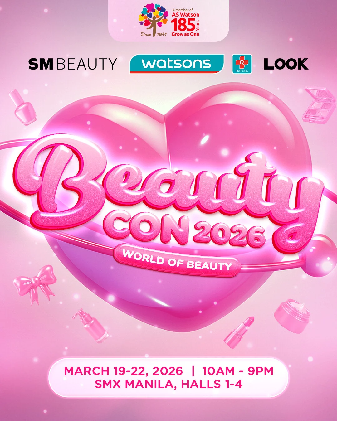 BEAUTYCON 2026 is a free and exclusive event to all SMAC holders, Watsons Club members, and Look List patrons. Present your physical and e-cards/QR codes upon entrance and join the fun for free. BEAUTYCON 2026: A World Of Beauty is happening from March 19 to 22, 2026 at the SMX Convention Center from 10 AM to 9 PM.