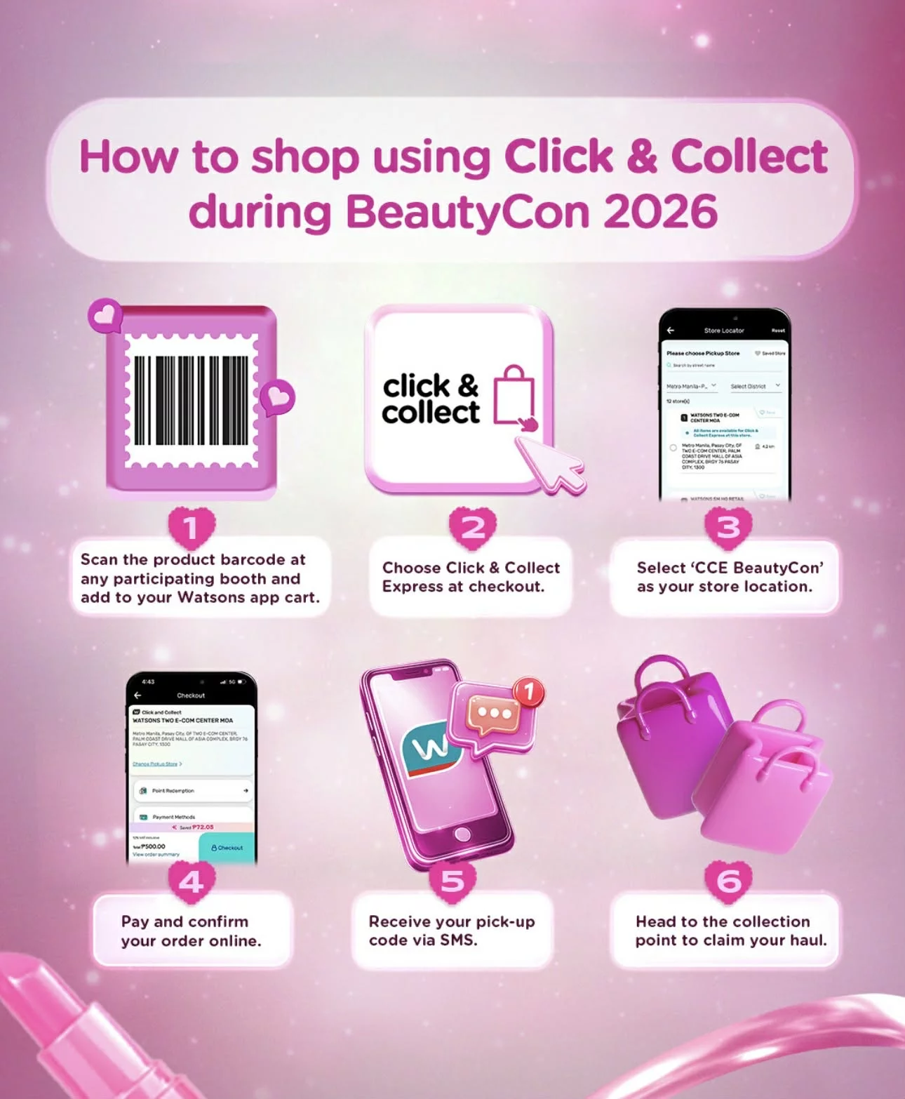 Shopping gets a seamless upgrade with the Watsons app’s Click & Collect feature. Members can skip the line by scanning products at participating booths, checking out via the Watsons app, and simply picking up their orders at the designated collection point. To further enhance the experience, 60 cashiers will be deployed across the venue—tripling last year’s capacity and bringing convenient checkout points closer to customers wherever they shop.